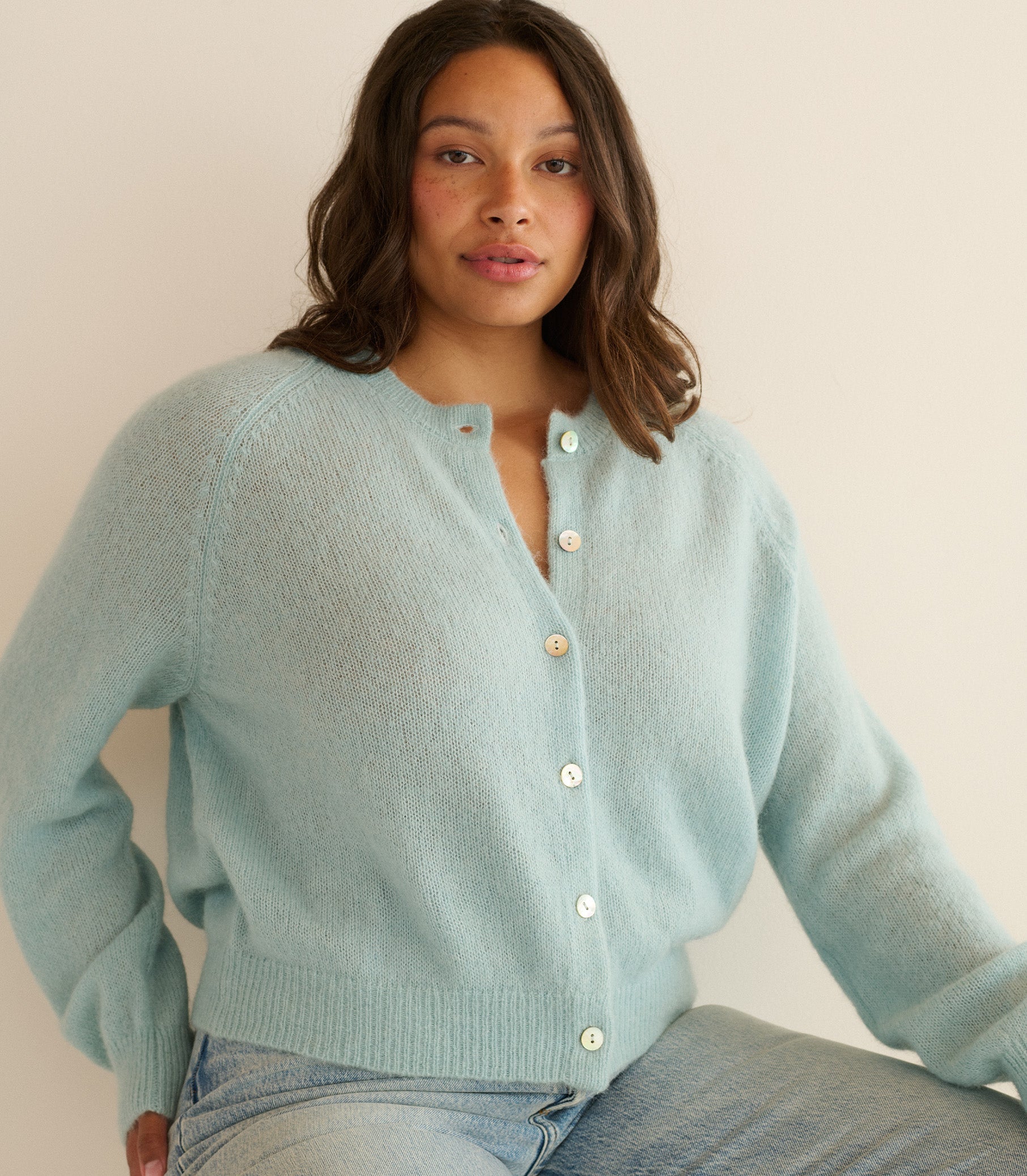 In a soft blend of superfine alpaca and merino wool, our forever-favorite Petra Cardigan features a crew neck, fitted raglan sleeves, and ribbing at the neckline, cuffs, and hem. A line of shell buttons extends down the front.