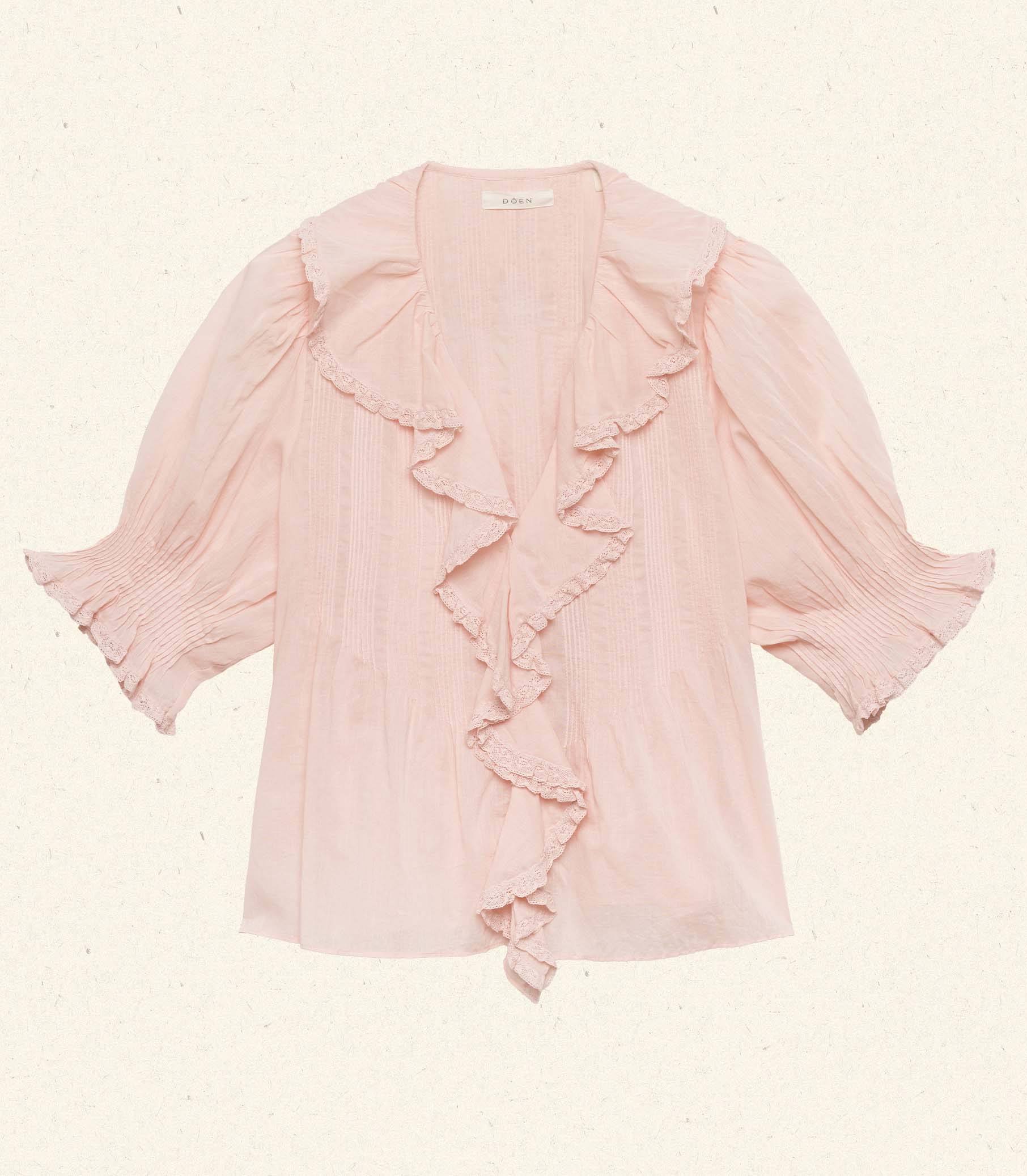 Crafted from the softest organic cotton voile, the Edwardian-inspired Henri Top - which made its debut in Spring 2018 - is a Favorite Character we find ourselves returning to again and again. It features a plunging V-neckline framed with cascading lace-trimmed ruffles that extend down the bodice and delicate clustered pintucks at the yoke, back, and short puffed sleeves. A line of hidden starburst buttons run up the center front. Wear it loose, or tuck it into your favorite high-waisted jeans.