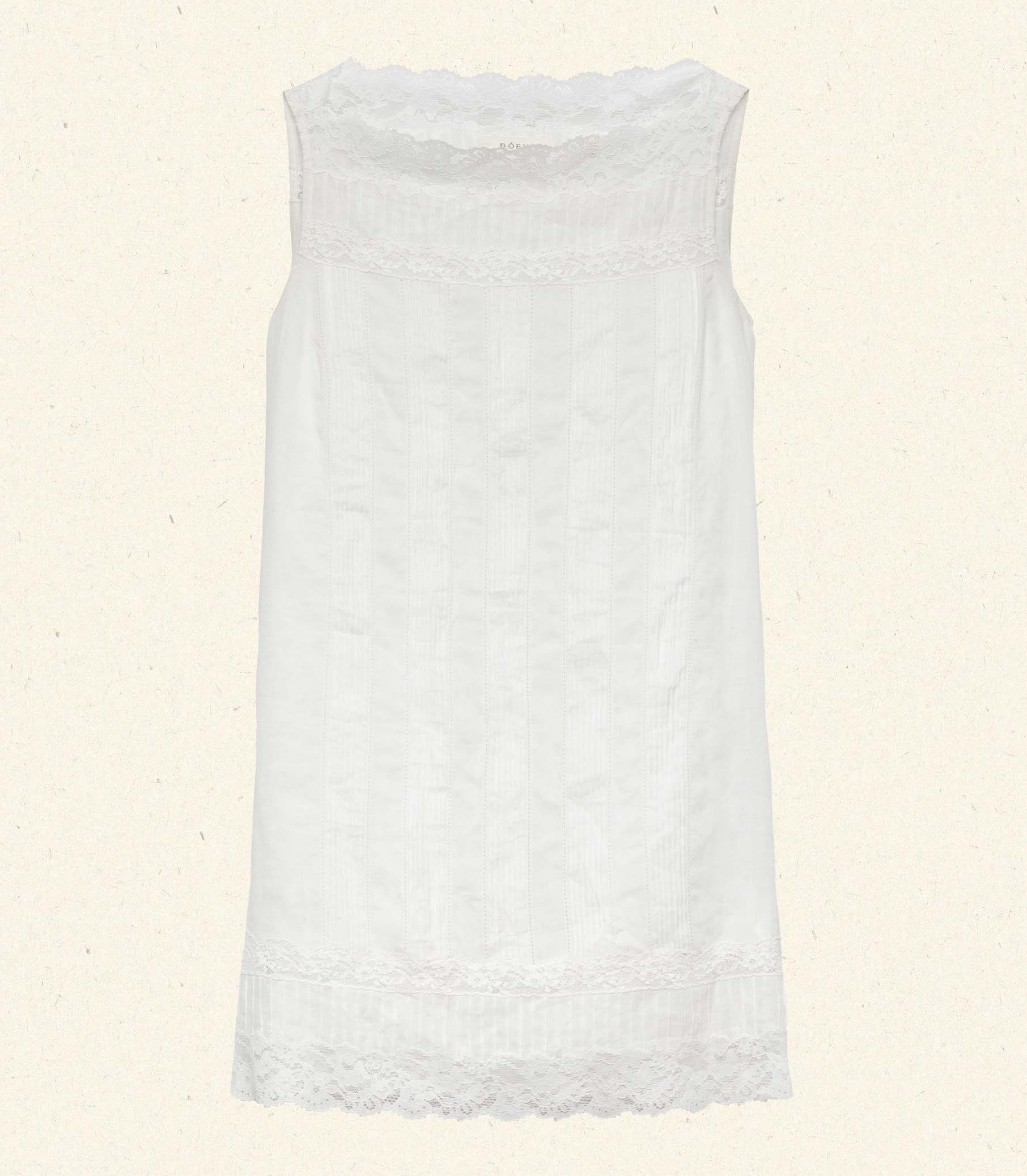 Taking cues from the details of Edwardian dresses, the DÔEN Heirloom Lida Dress is a sleeveless shift crafted from airy, lightweight ramie. Intricate English lace frames the bateau neckline and mini-length hem, while delicate pintuck panels framed by ladder trim run down the center front.