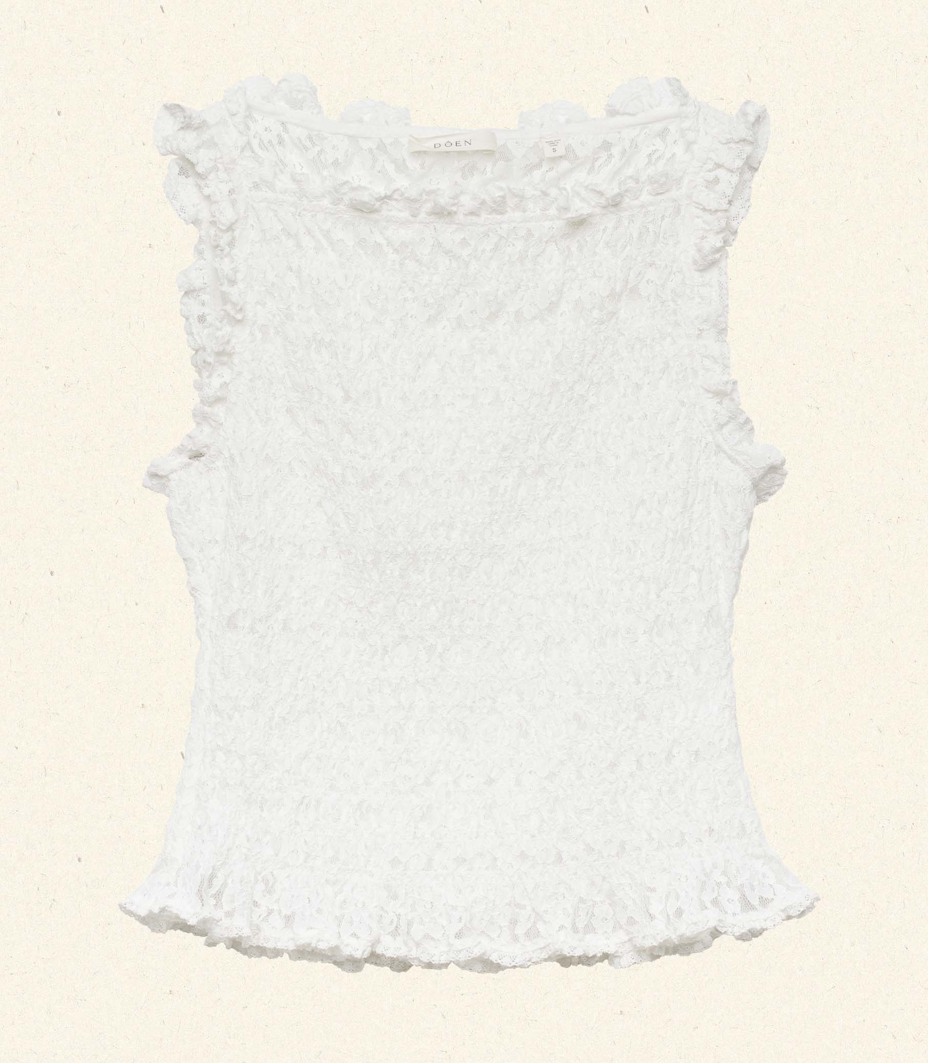 The ‘90s-inspired Rosita Top is crafted from intricate floral lace with allover smocking and a wide bateau neckline. Petite ruffles trim the neckline, sleeve openings, and hem.